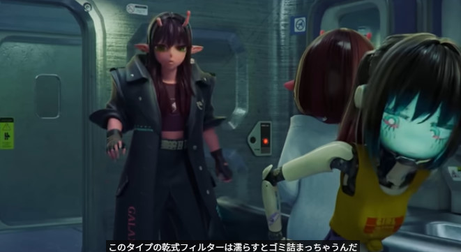 乾式フィルターを外すために下着になるマキナ。